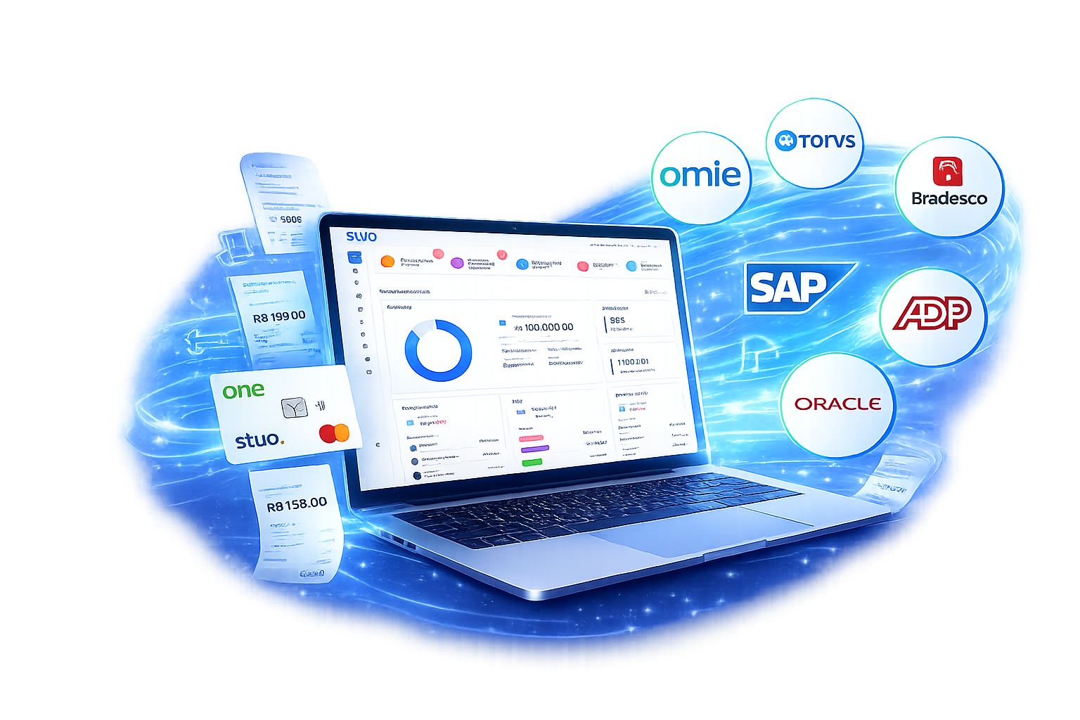 Integração inteligente com ERPs e cartões bancários